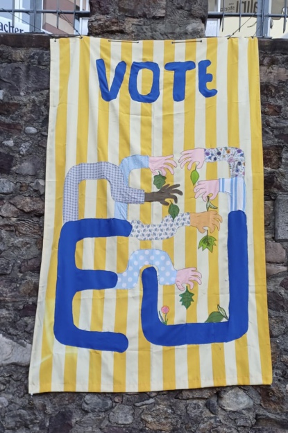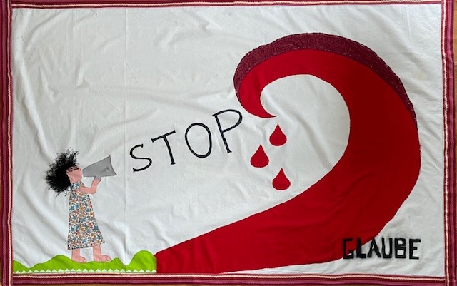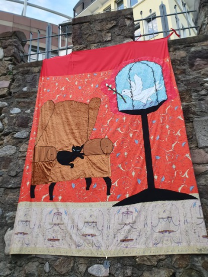 Unter dem Motto „Genähte Botschaften“ stellen die StreetArt-Künstlerinnen Dada Poy (Freiburg) und Katrin Wunder (München) die Werke zur Verfügung. Die Banner haben verschiedene Formate und können an Balkonen, Hauswänden oder Bäumen aufgehängt werden. Bei einer Führung durch das Viertel können die Transparente von Freitag, 26.9.2025 bis 28.9.2025 bestaunt werden.