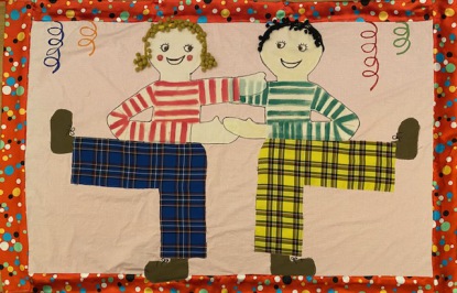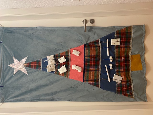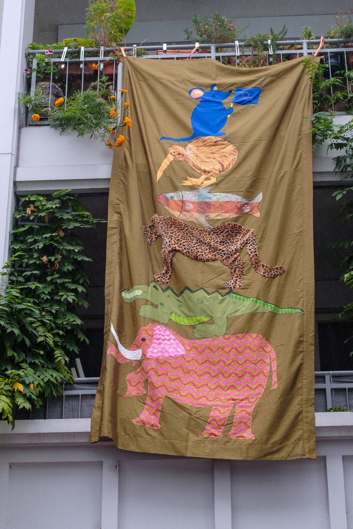 * Fast alle Stoffe stammen aus Restbeständen. Upcycling ist die Grundidee der Arbeit.